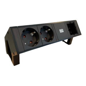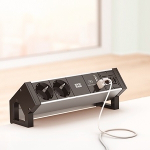 - Desk 2 stekkerblok 2x stopcontact, dubbele usb lader en 1xcustom module alu/zwart