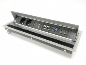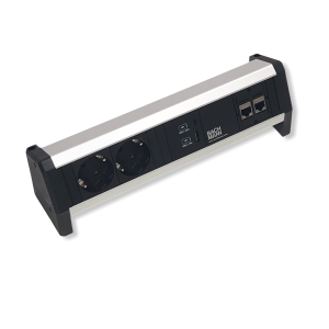 - Desk 2 stekkerblok 2x stopcontact, dubbele usb lader en 1xcustom zilvergrijs
