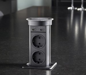 -                 Elektrische pop-up stekkerdoos 2x230v usb+QI lader mat zwartRegular Price € 418,50 Special Price € 242,00 € 200,00