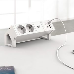 1. Desk 2 Bachmann 2x stopcontact A+C lader wit